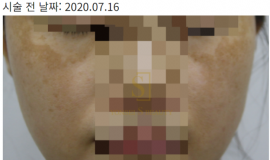 본 사진은 고객분의 동의를 받았으며, 어떠한 보정작업도 하지 않았습니다.해당시술로 인한 색소침착, 모낭염, 붉음증, 가려움 등의 부작용이 있을수도 있습니다.     기미치료에는 나노초, 피코초 레이저를 이용한 토닝법도 있지만 경구약과 바르는 외용제를 이용한 치..