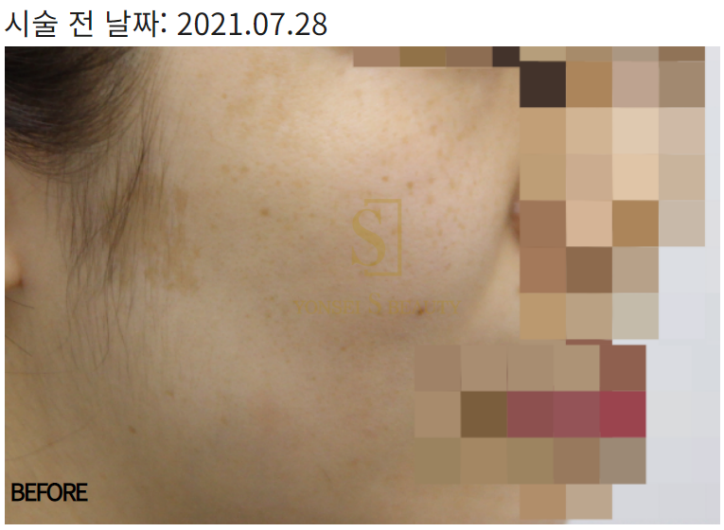 로 점잡티, 흑자등의 표재성 색소가 있는 패턴입니다. 이런한 표재성 색소들은 어븀야그나 피코 레이저를