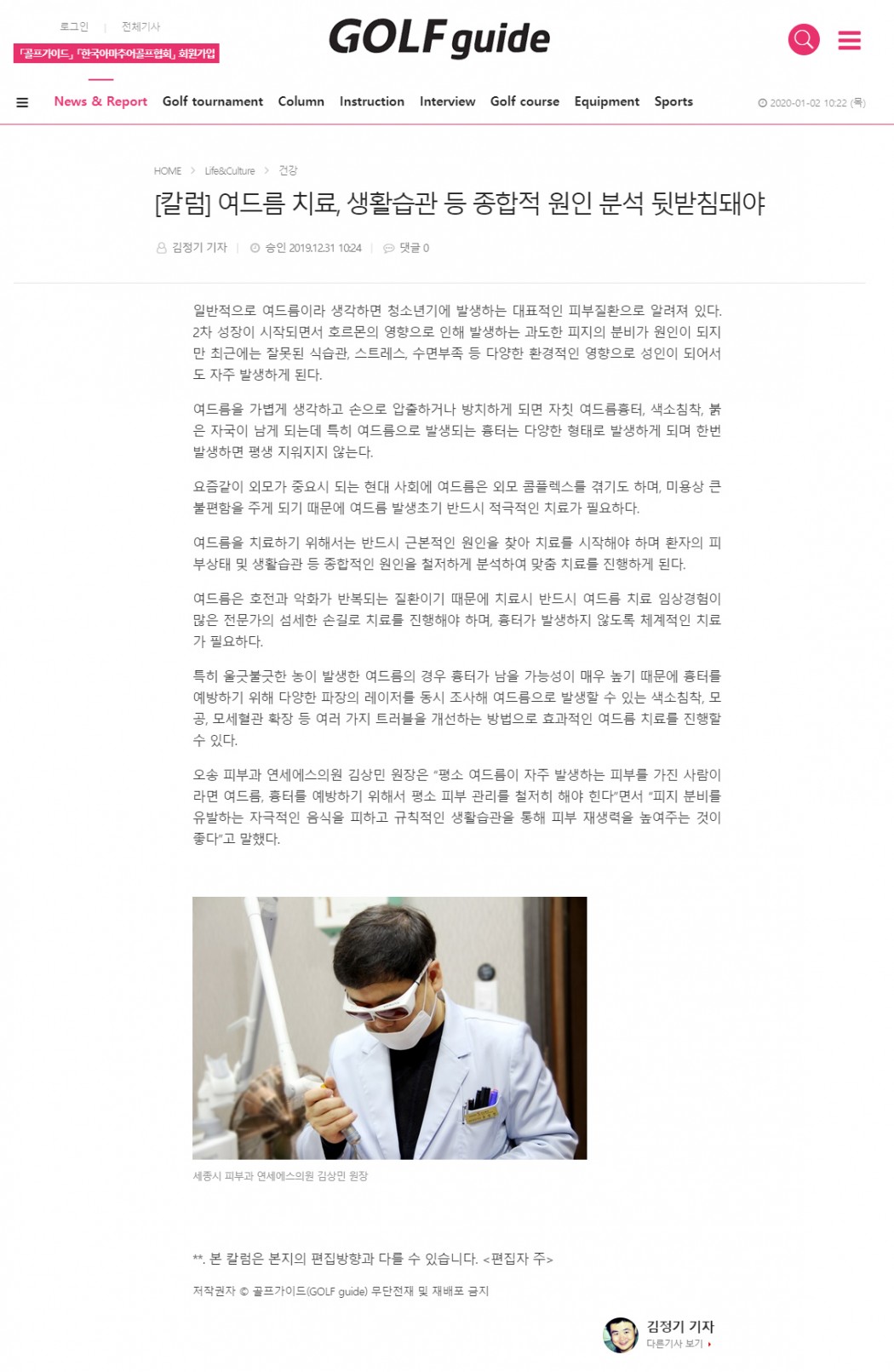 인쇄하기/글자확대.축소 기본 크게 더크게 인쇄 스크랩 목록보기 [칼럼] 여드름 치료, 생활습관 등 종합적 원인 분석 뒷받침돼야 페이지 정보 작성자연세S클리닉 작성일2020-01-02 11:47:03 조회3,137 댓글0 본문 인쇄하기/글자확대.축소 기본 크게 더크게 인쇄 스크랩 목록보기 이전글 ▲예민해진 피부, 트러블, 기미, 여드름 완벽하게 차단하려면? 다음글 ▼[건강칼럼] 환절기 피부 트러블, 기미, 여드름 '맞춤케어'로 철저한 관리 댓글목록 등록된 댓글이 없습니다. 이전글 다음글 목록보기