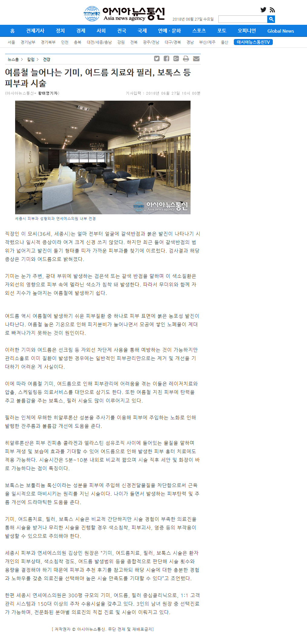 인쇄하기/글자확대.축소 기본 크게 더크게 인쇄 스크랩 목록보기 여름철 늘어나는 기미, 여드름 치료와 필러, 보톡 등 피부과 시술 페이지 정보 작성자연세S클리닉 작성일2018-06-27 12:36:49 조회3,391 댓글0 본문 인쇄하기/글자확대.축소 기본 크게 더크게 인쇄 스크랩 목록보기 이전글 ▲연세에스의원"손발톱 무좀 치료, 이제 약 없이 치료가능" 다음글 ▼보톡스, 필러 시술 부작용 우려된다면 베인라이트 사용여부 확인해야 댓글목록 등록된 댓글이 없습니다. 이전글 다음글 목록보기