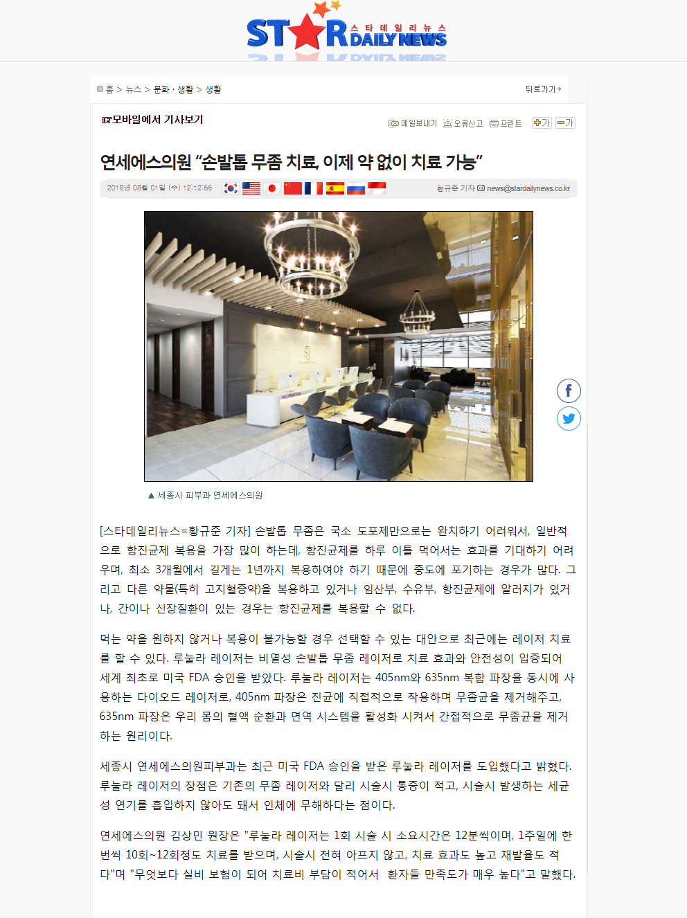 인쇄하기/글자확대.축소 기본 크게 더크게 인쇄 스크랩 목록보기 연세에스의원"손발톱 무좀 치료, 이제 약 없이 치료가능" 페이지 정보 작성자연세S클리닉 작성일2018-08-01 15:24:48 조회3,656 댓글0 본문 인쇄하기/글자확대.축소 기본 크게 더크게 인쇄 스크랩 목록보기 이전글 ▲늦여름도 뜨겁다...지친 피부를 위한 피구과의 처방전 다음글 ▼여름철 늘어나는 기미, 여드름 치료와 필러, 보톡 등 피부과 시술 댓글목록 등록된 댓글이 없습니다. 이전글 다음글 목록보기