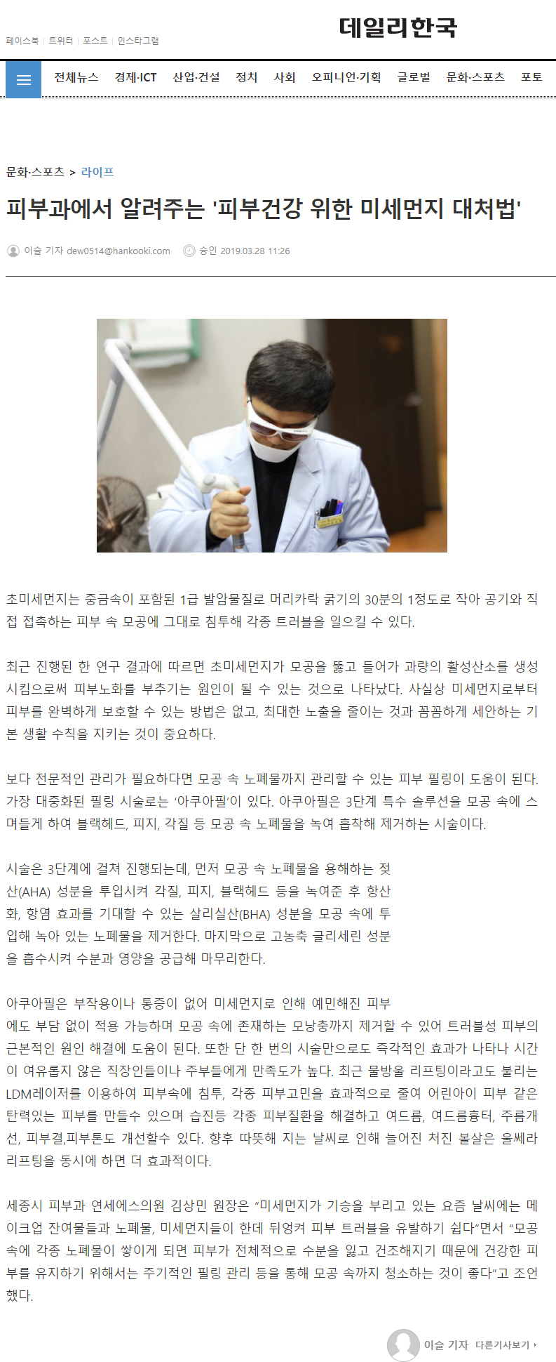 인쇄하기/글자확대.축소 기본 크게 더크게 인쇄 스크랩 목록보기 피부과에서 알려주는 '피부건강 위한 미세먼지 대처법' 페이지 정보 작성자연세S클리닉 작성일2019-03-28 11:50:36 조회3,380 댓글0 본문 인쇄하기/글자확대.축소 기본 크게 더크게 인쇄 스크랩 목록보기 이전글 ▲[칼럼] 봄맞이 다이어트, 조금 더 쉽고 확실하게 감량하는 법? 다음글 ▼세종시 피부과에서 알려주는 필러-보톡스 부작용 예방법 댓글목록 등록된 댓글이 없습니다. 이전글 다음글 목록보기