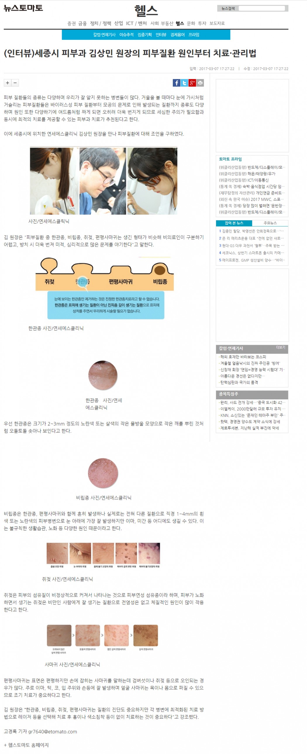 인쇄하기/글자확대.축소 기본 크게 더크게 인쇄 스크랩 목록보기 (인터뷰)세종시 피부과 김상민 원장의 피부질환 원인부터 치료·관리법 페이지 정보 작성자연세S클리닉 작성일2017-03-07 18:52:55 조회3,947 댓글0 본문 인쇄하기/글자확대.축소 기본 크게 더크게 인쇄 스크랩 목록보기 이전글 ▲세종시 피부과 연세에스 김상민 원장, 2017 미스코리아 대전·충남 심사위원 맡아 다음글 ▼세종시피부과 연세에스의원, 난치성 기미 대처법 댓글목록 등록된 댓글이 없습니다. 이전글 다음글 목록보기