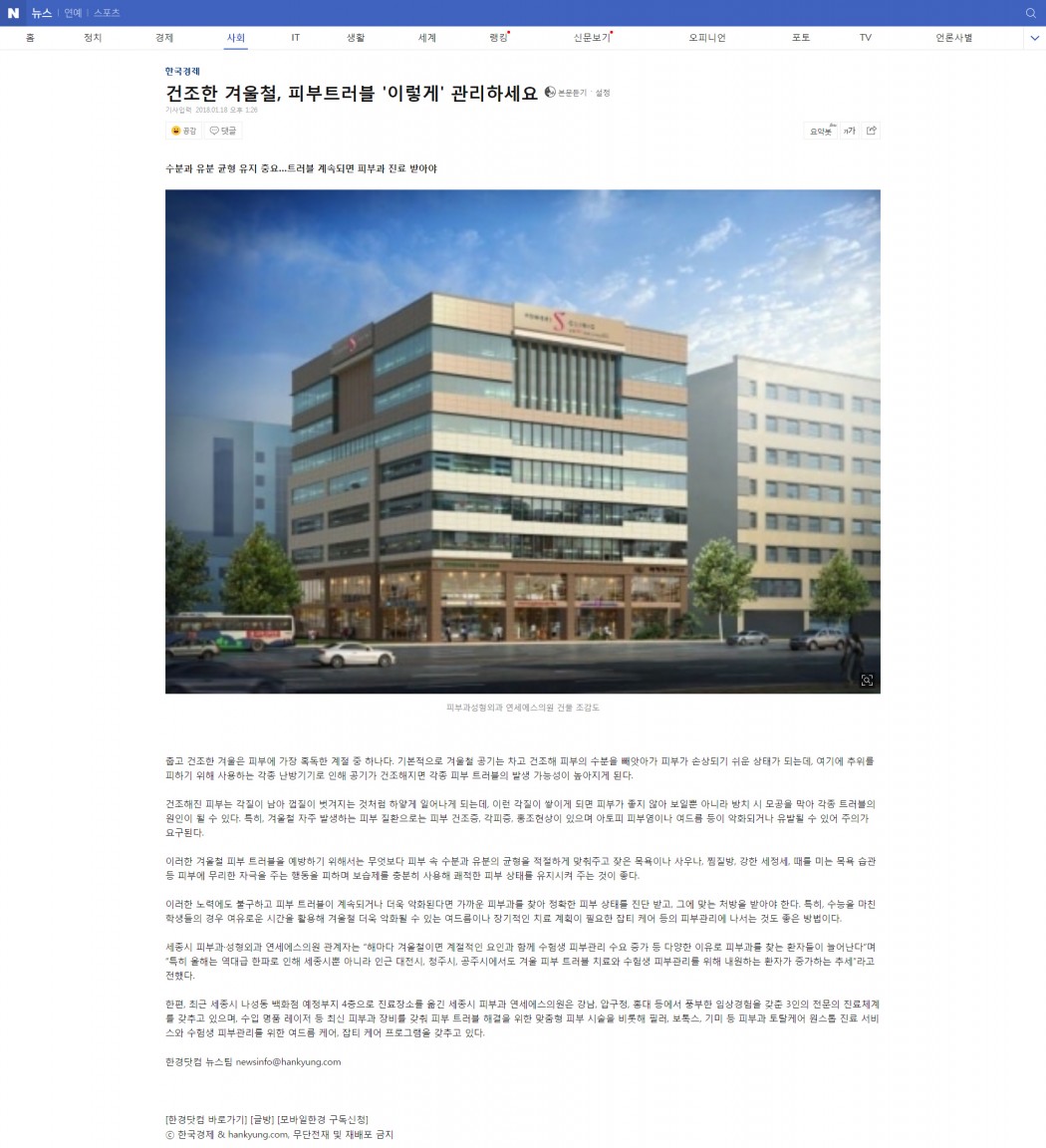 인쇄하기/글자확대.축소 기본 크게 더크게 인쇄 스크랩 목록보기 건조한 겨울철, 피부트러블 '이렇게' 관리하세요 페이지 정보 작성자연세S클리닉 작성일2018-01-18 15:43:48 조회3,532 댓글0 본문 인쇄하기/글자확대.축소 기본 크게 더크게 인쇄 스크랩 목록보기 이전글 ▲세종시 피부과에서 알려주는 '환절기 피부관리 꿀팁' 다음글 ▼세종시 피부과 연세에스의원, 내년 1월 8일 확장 이전 댓글목록 등록된 댓글이 없습니다. 이전글 다음글 목록보기